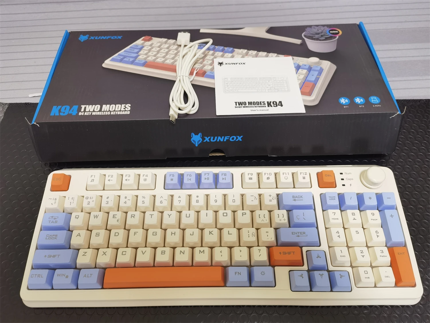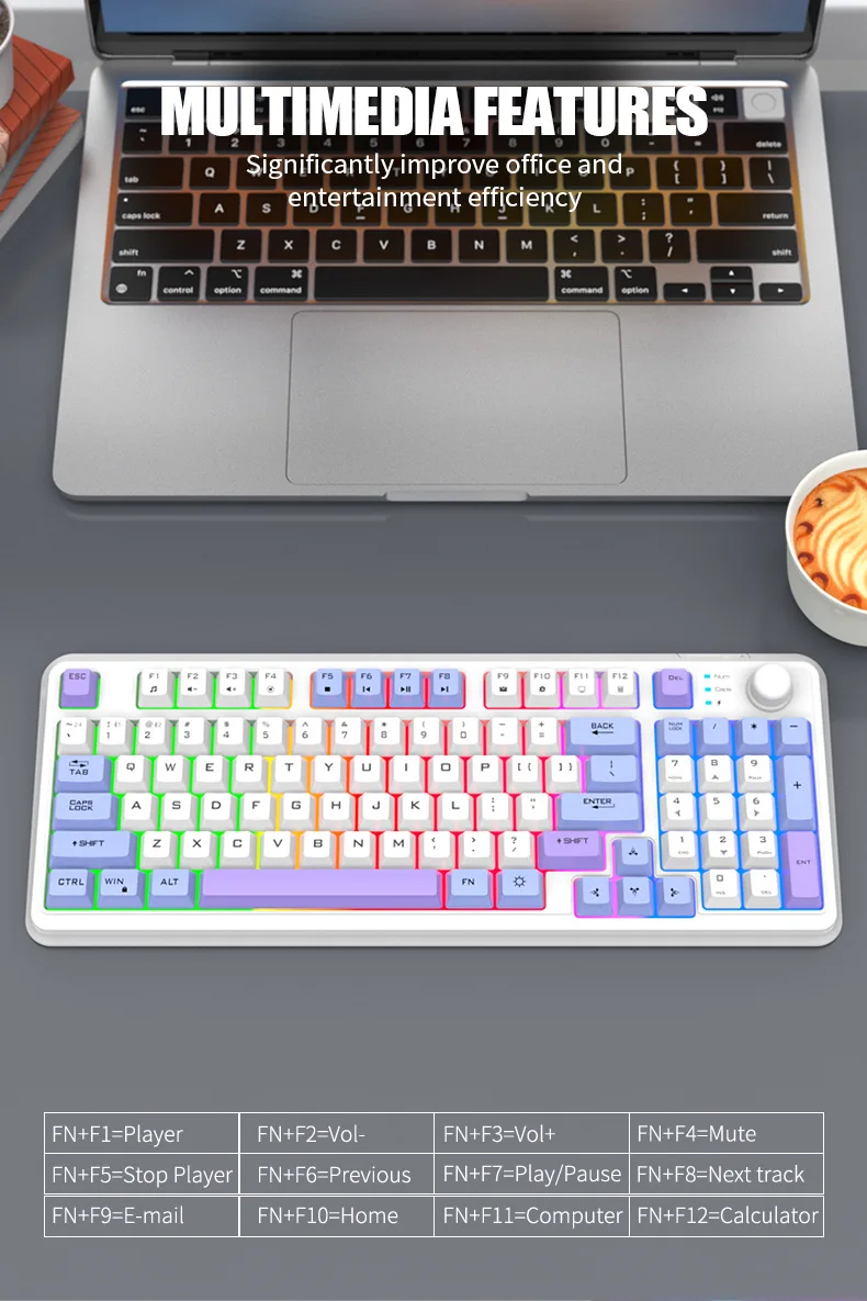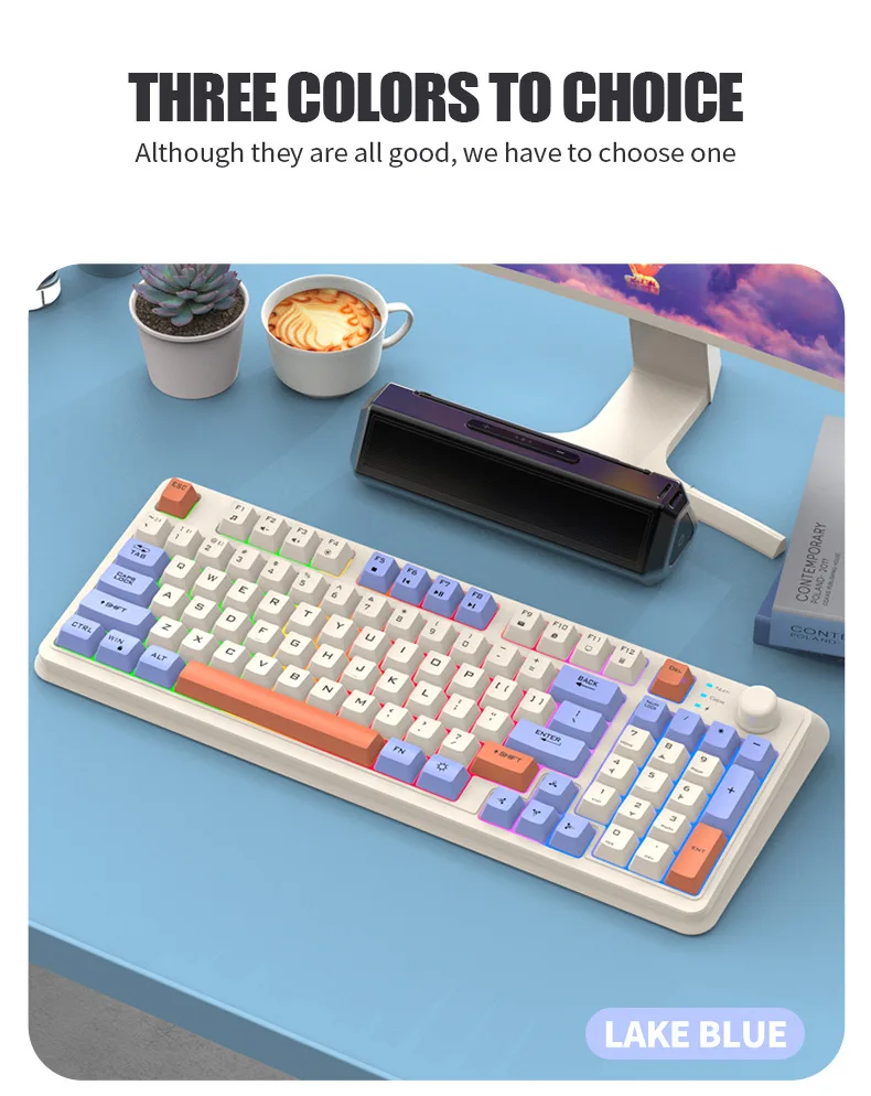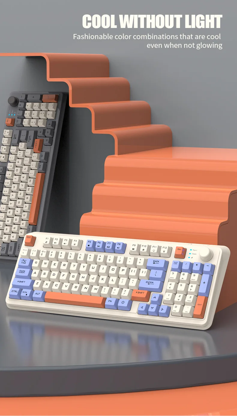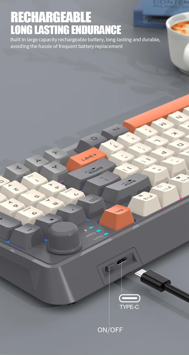 Wireless Keyboard Spanish Russian Arabic Korean Keyboard Mouse Kit Bluetooth 2.4G Type C RGB Light 94 Keys Recharge Battery K94