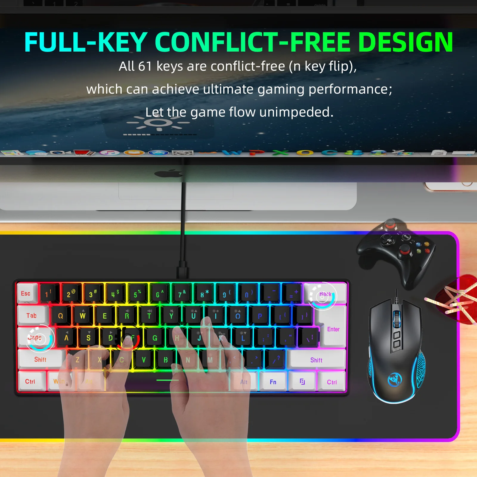 Keyboard and mouse 60% computer gaming combo kit pc Backlit wired keyboards mice kit office combos de promoção Ergonomic teclado